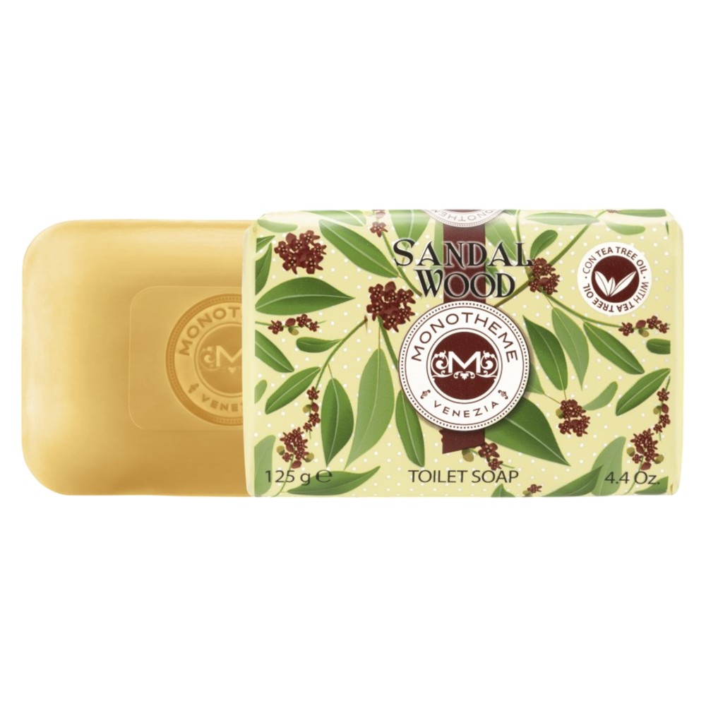 Monotheme enriches its beauty and hygiene ritual with a collection of aromatic soaps. The raw materials are the undisputed protagonists and the addition of TEA TREE OIL, a natural antibacterial with antiseptic and antifungal properties, makes them an indispensable ally for your skin care. A precious soap with warm notes of sandalwood.