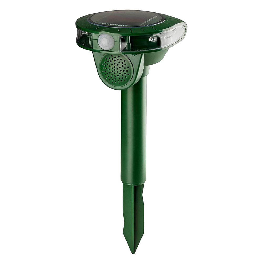 The Grundig solar animal repellent protects your garden from uninvited guests. Whether neighbour's cat, foxes, dogs, raccoons, rabbits or mice. The 2400 mAh Ni-MH batteries installed in the device charge in daylight via the integrated solar panel. Unlike many other devices, the batteries (AA) are replaceable.
