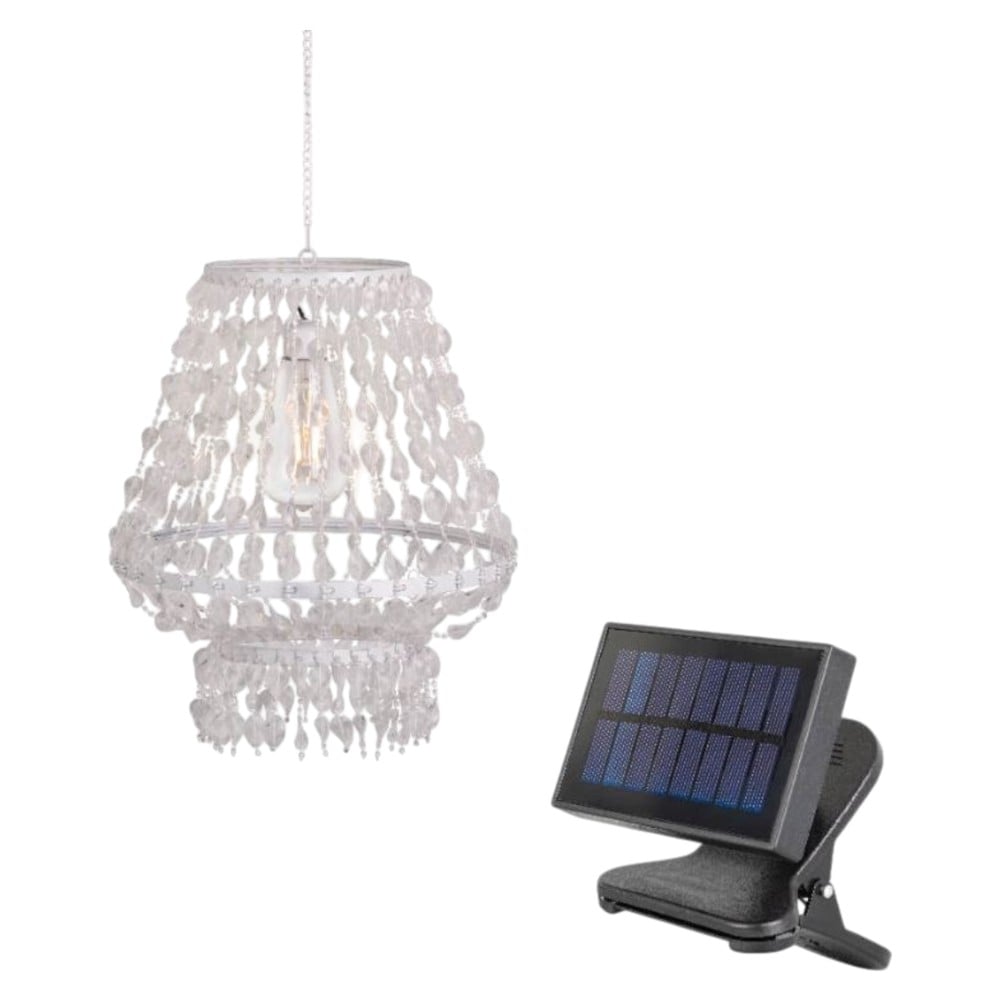 Solar panel light, diameter 27 cm and height 34 cm, white color, with hanging system. This light offers a modern and elegant design, using solar energy to provide efficient and ecological lighting. It is ideally suited for outdoor environments, such as gardens, verandas or paths, creating a warm and relaxing atmosphere.