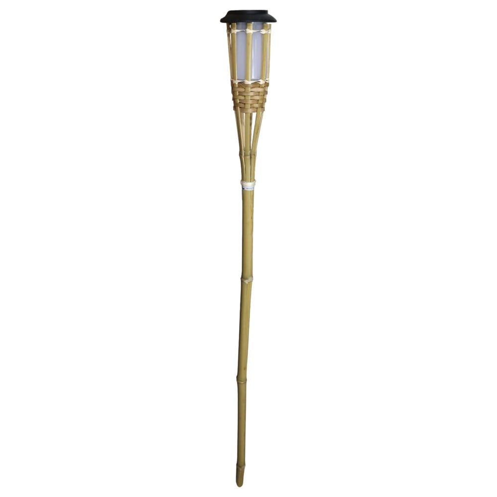 Solar LED light, made of bamboo, warm white color. This light measures 9.2 x 100 cm and works with a 1xAAA, 1.2V, 300mAh battery. It uses the solar panel to collect energy during the day and provides efficient lighting at night. This light is ideal for use in outdoor environments, such as gardens, verandas or balconies, creating a warm and natural atmosphere.