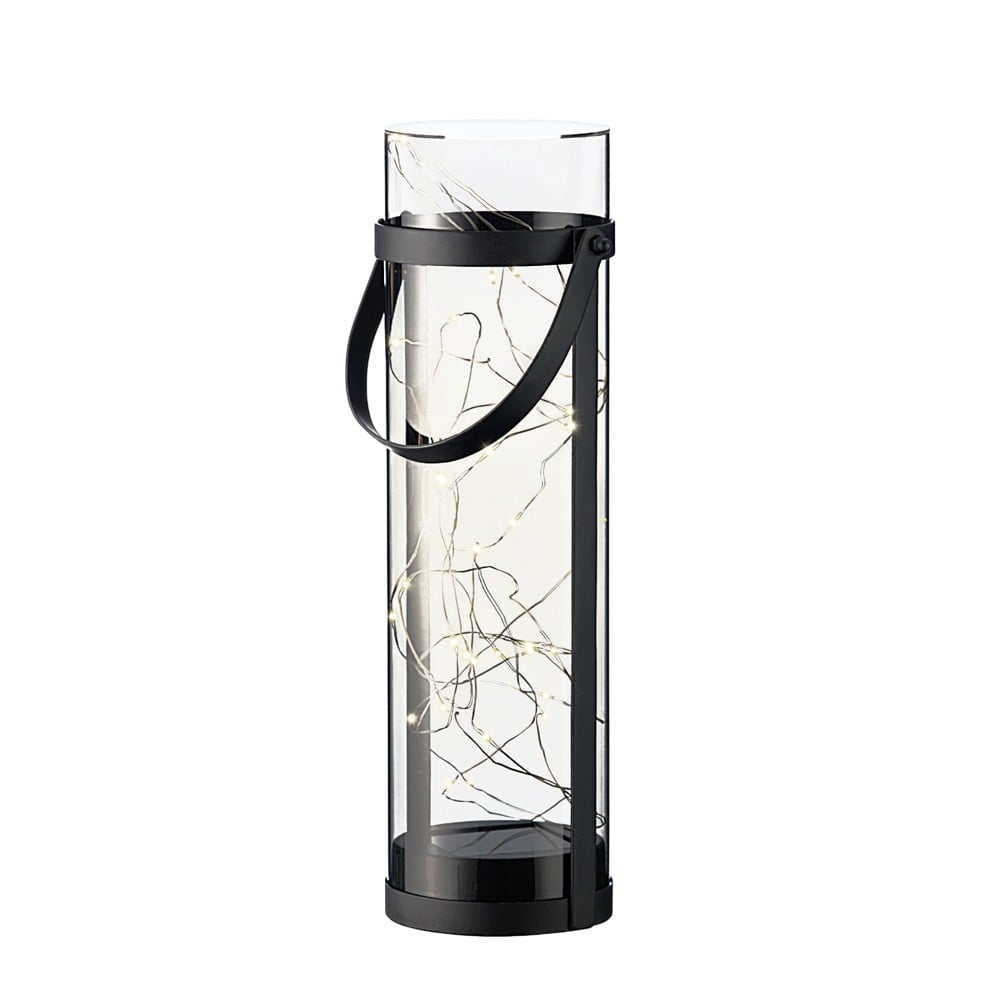 Solar panel light, microLED, warm white color, dimensions 10x34 cm, made of metal and glass, black color. This light offers an elegant and modern design, using solar energy to provide warm and efficient lighting, ideal for outdoor spaces such as gardens, paths or verandas.