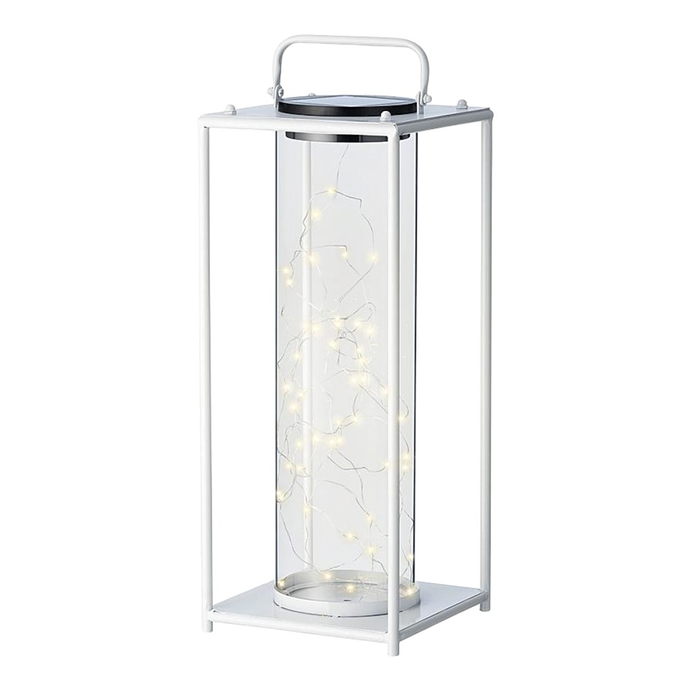 Solar panel light, microLED, warm white, 20x20x49cm, metal/glass, white
