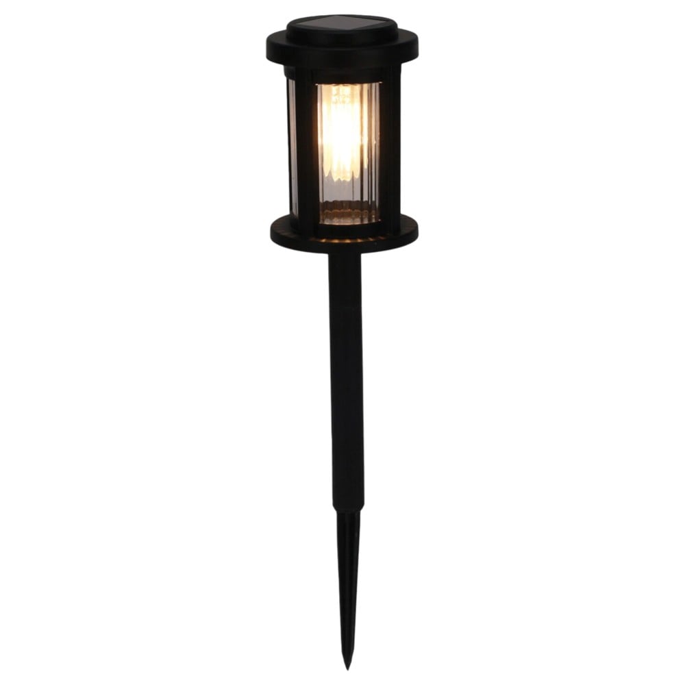 Solar light with solar panel, height 40 cm, plastic material. Charges during the day and turns on automatically in the dark. Ideal for garden lighting, paths or outdoor decor.