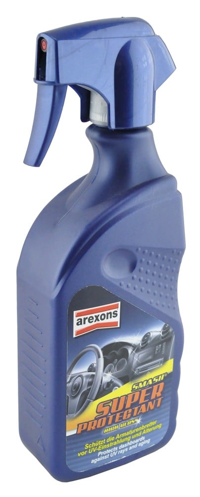 Arexons Smash Super Protectant High Gloss Brilliant protection for dashboards cleans, renews and protects dashboards and all surfaces in the car made of plastic, leather, artificial leather, rubber and burl wood. The special solvent-free formula with no gas on a neutral basis is sprayed in an antistatic protective film that repels dust, prevents the formation of tracks and repels water and dirt in general. Arexons Smash Super Protectant High Gloss leaves a fresh and pleasant smell in the car interior.