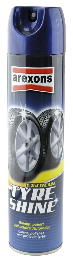 Arexons Extreme Tyre Shine is the cleaning treatment for all types of tires. The active foam works in a few seconds without further actions‐simply spray the product: the dirt, captured by the foam, drains away leaving the tyre clean, shiny and protected against weather conditions.