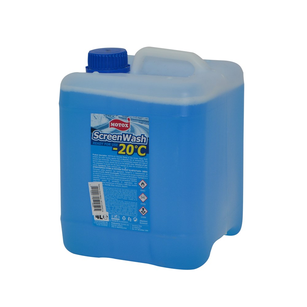 Windshield cleaner -20°C, (HDPE) 4L High-tech formula, non-phosphorus and non-grinding. Eliminate the heavy oil film and besmirch on the glas. Form transparent film on the glass surface, anti-static, fog and dust on the glass. No hurt to skin, cleaning by smearing, lasting clean