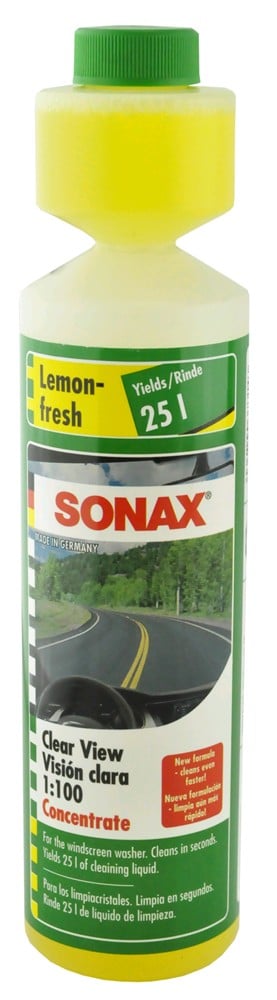 This is a highly concentrated cleaning additive for the windscreen washer unit during summer. Just 25 ml of the concentrate give 2.5 litres of cleaning fluid. It removes insects, oil, soot, silicone and dangerous dazzling films without streaks.It does not induce stress cracks in anti-glare headlights.It is ideal for high quality XENON headlamps and light diffusing plastic headlamps in clear-glass optic. It has fresh fragrance, comes in a practical bottle with dosing chamber and does not contain phosphate.
