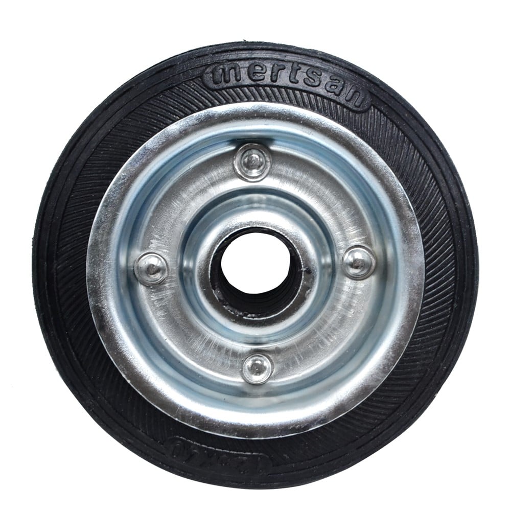 The wheels in this series are suitable for use on all kinds of service equipment. Pressed sheet steel rim, rubber with polyamide bush, Electro galvanized against corrosion -20°C to + 60°C