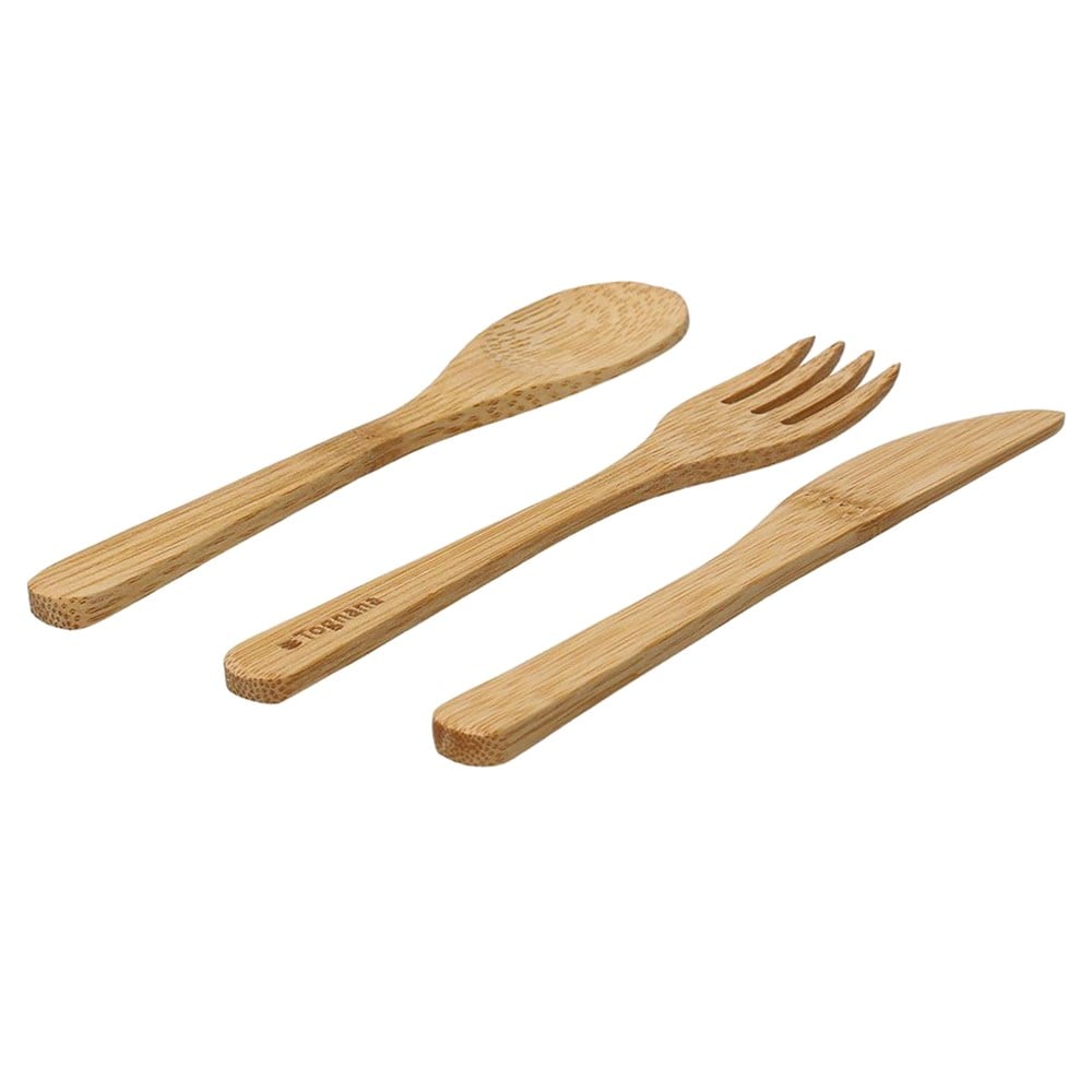 Dining set consisting of a spoon, fork and knives. Made from natural bamboo, this set is very suitable for serving various cakes like cake, panetone and others.