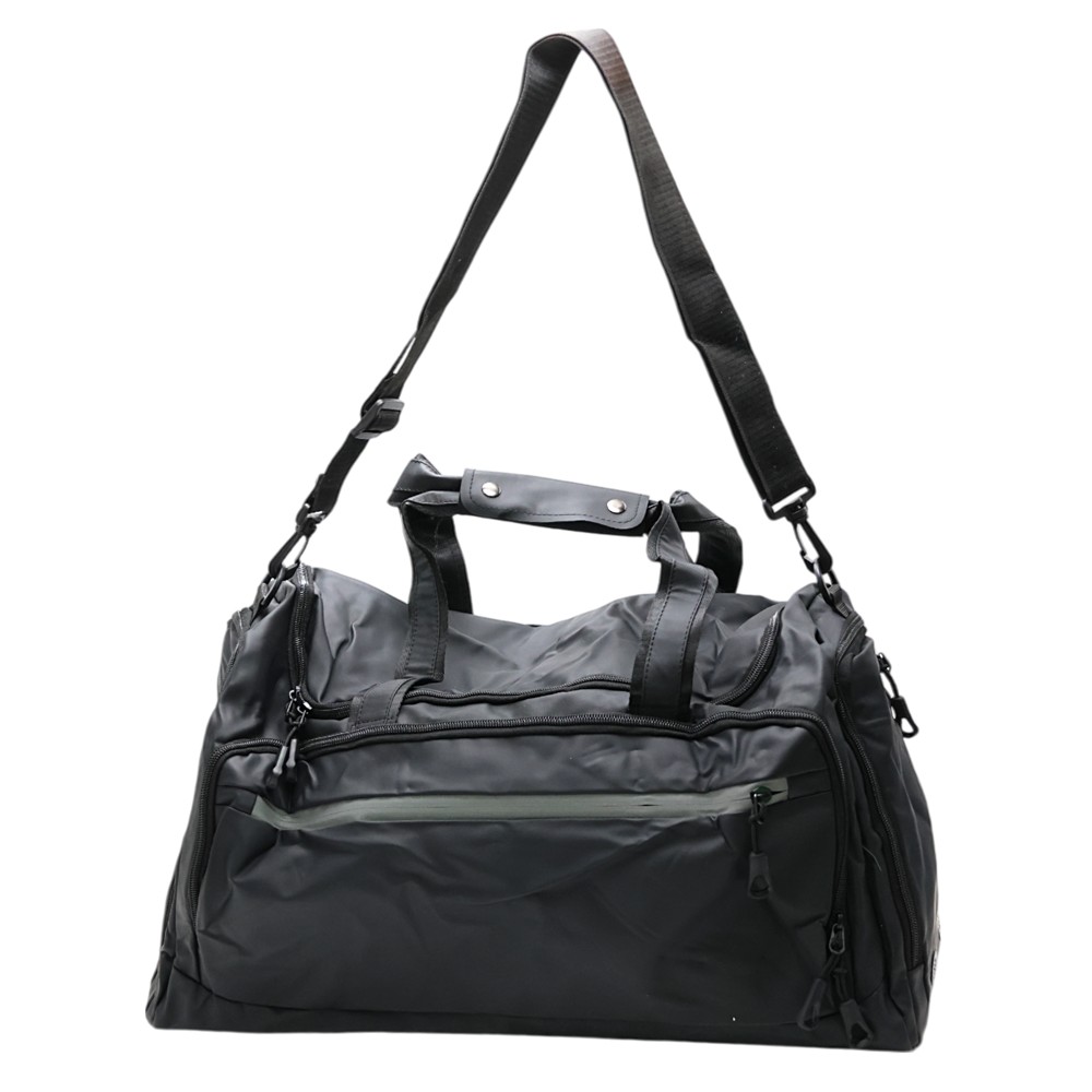 Sports travel bag. It is the ideal accessory to collect and transport your sports accessories during various trips and workouts. The bag is equipped with several pockets for storing your sports accessories and is built with quality materials to guarantee the guarantee of no damage to your accessories, as well as a long life of the bag itself. The top of the bag is equipped with two handles to make it possible to carry the bag and your belongings. It has a unique black color design.
