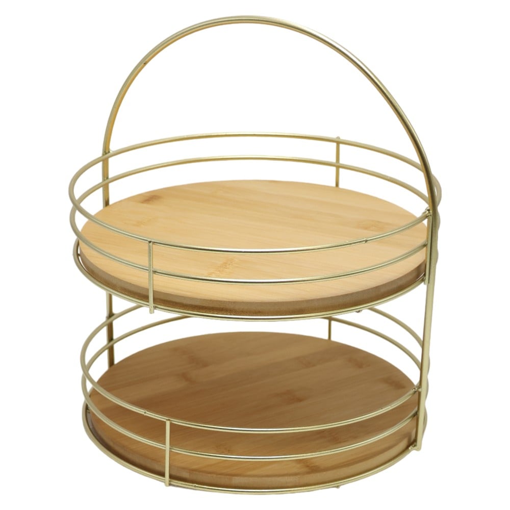 Stand with 2 layer, bamboo, brown, Dia.26x26 cm