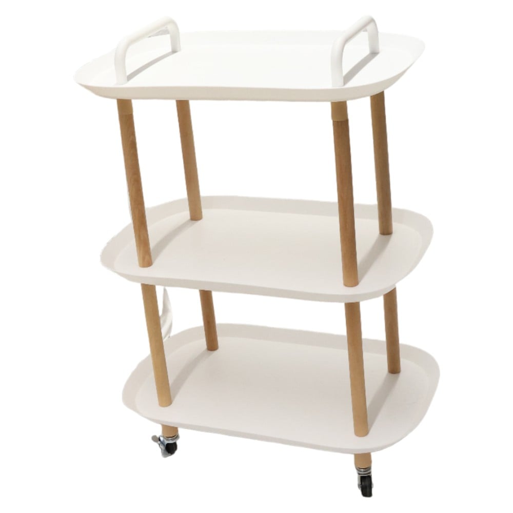 Stand with 3 layer, plastic/wood, white, 36x56xH80 cm