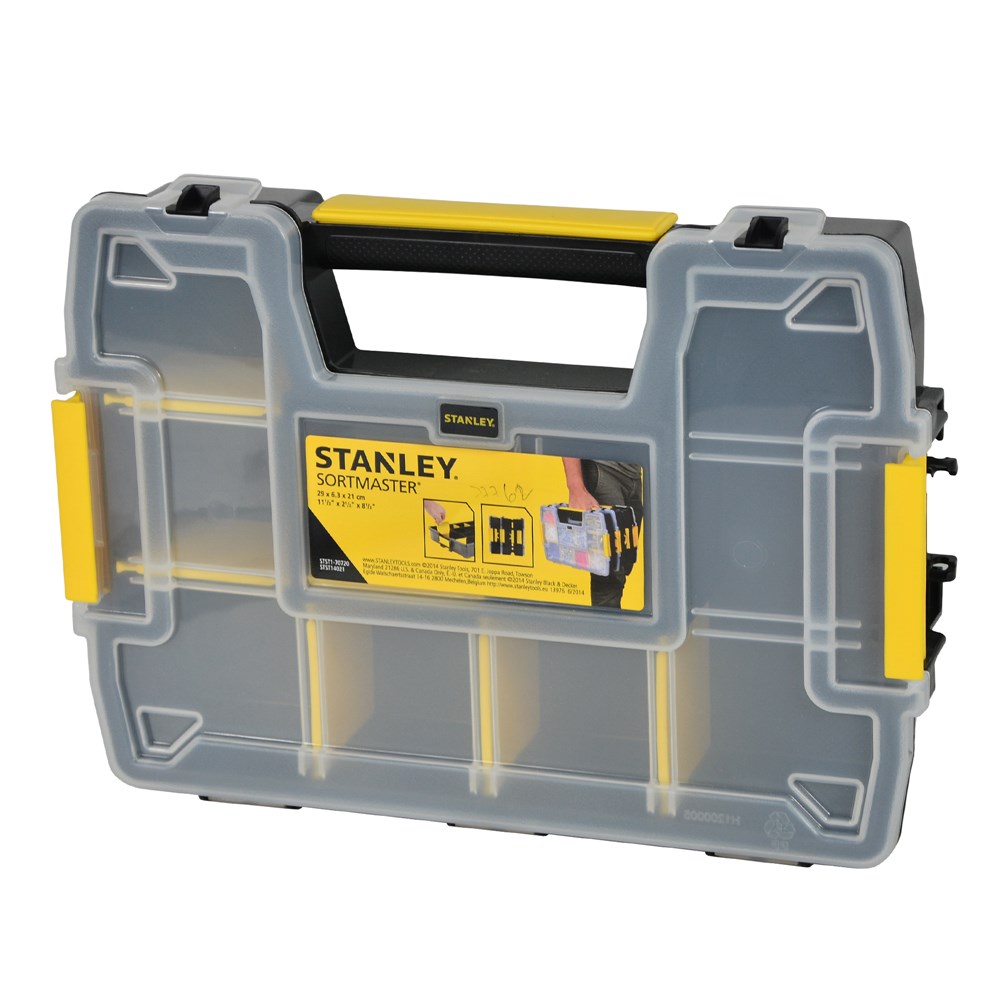Innovative locking system allows the connection and transport of up to three individual organizers; Side latches for secure stacking; Removable inserts allow the combined storage of tools and small parts; The special design of the lid keeps small parts and inserts in place; Also available as double Organizer (two singles) with double-sided access available (STST1-71197).