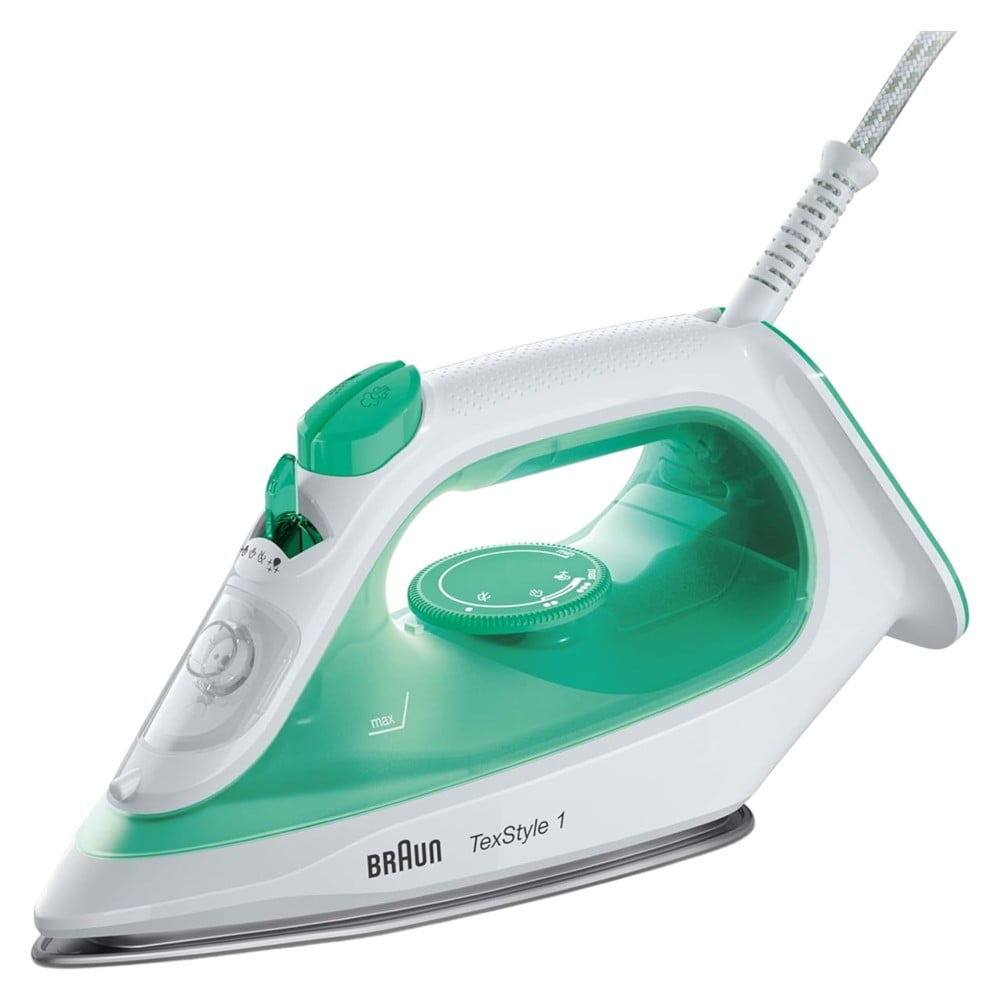 Braun’s TexStyle 1 is the lightest steam iron designed to make quick and easy ironing tasks. It features SuperCeramic and non-stick coating across the range for gentle ironing. Light and quick ironing: to make ironing an effortless pleasure, especially when you have loads to iron.Rapid heat up: iron ready with Max setting in 35 Seconds. Non-stick soleplate coating: for smooth gliding on all ironable garments. Precision Tip: allows you to easily remove the toughest wrinkles from hard to reach areas like collars and seams. Easy Refill 220ml: for longer ironing autonomy. Great performance: ideal combination of 1.900W power output and strong steam emission for a great end result. Energy saving: saves up to 50% Energy when operated in Eco mode compared to Turbo mode. Self-clean: ensures long-lasting steam performance. Easy-to-use and convenient system to clean the soleplate from scale particles.