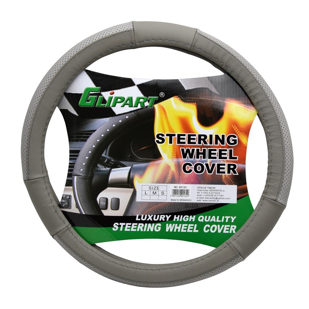 Steering wheel cover, Glipart, leather, 90157, size M, grey