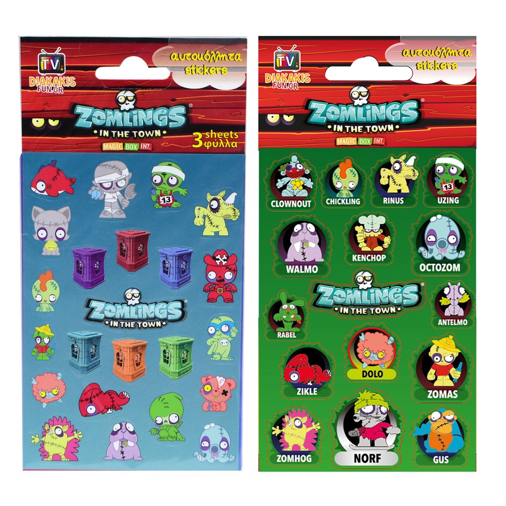 Stickers for kids, Zomlings, Diakakis, polyvinyl chloride (PVC), 12x8 cm, miscellaneous, 3 pieces