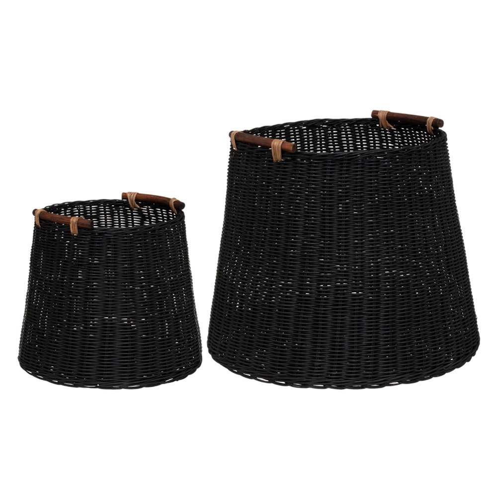 Storage basket, Ori, 2 pieces, rattan, black, Ø31xH28 cm; Ø45xH38 cm