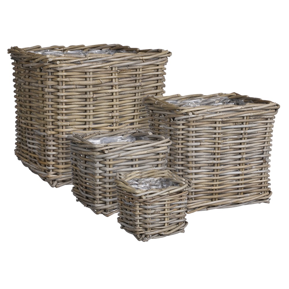 Storage basket, set of 4 pieces, Marcia, rattan, grey, 18x18xH14 cm; 21x21xH17 cm; 27x27xH25 cm; 33x33xH30 cm