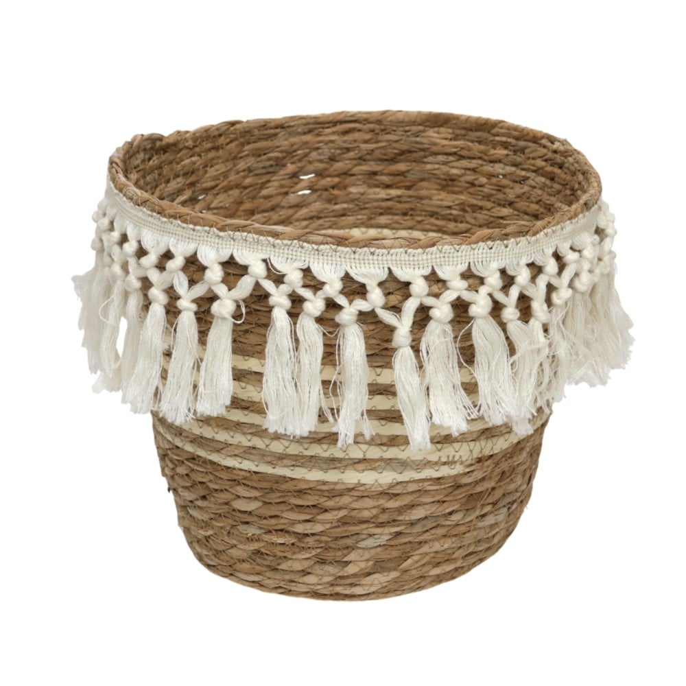 Style and elegance are the two elements that characterize this storage basket, which comes in sizes Ø26xH24 cm, easily adapting to your spaces. You can get them as a set, organizing your items perfectly, but also choose to use them as you wish. Made of straw and with a combination of white and natural brown colors, it is the ideal choice for fans of a minimalist style with clean lines. The basket has a boho style and is easily combined with different environments. You can use it in the bathroom to organize various items of personal use, as well as in your bedroom, so it can have different options and alternatives of use according to your needs.