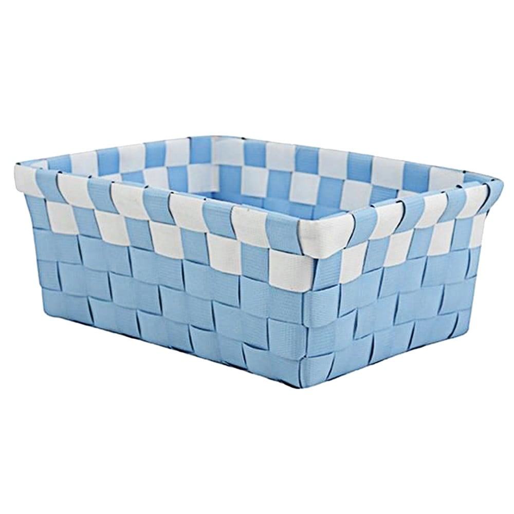 Storage basket, wicker, blue/white, 19x14xH8 cm