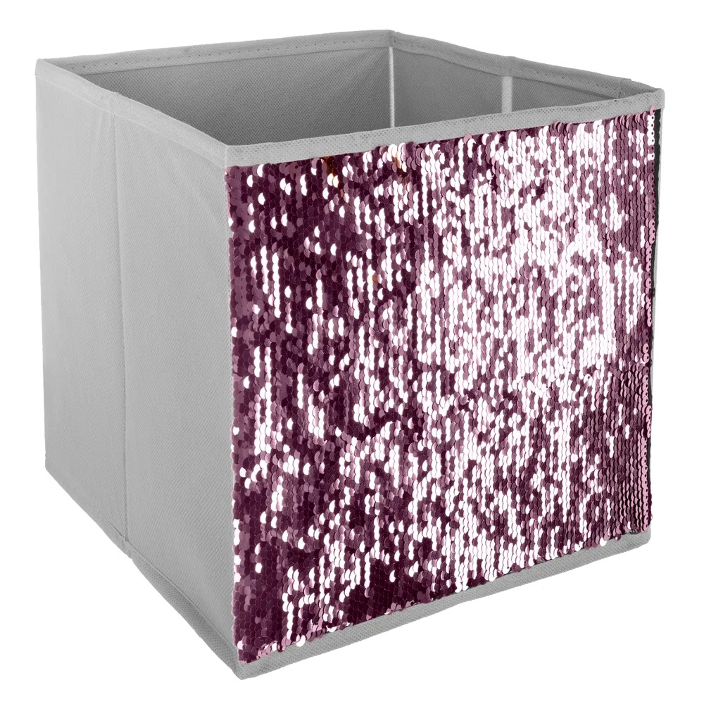 Storage box with sequins 24x23x24 cm. The box consists of polypropylene material and cardboard equipped with double-sided seams. The basket serves as storage for children's toys. Ideal for children's room.