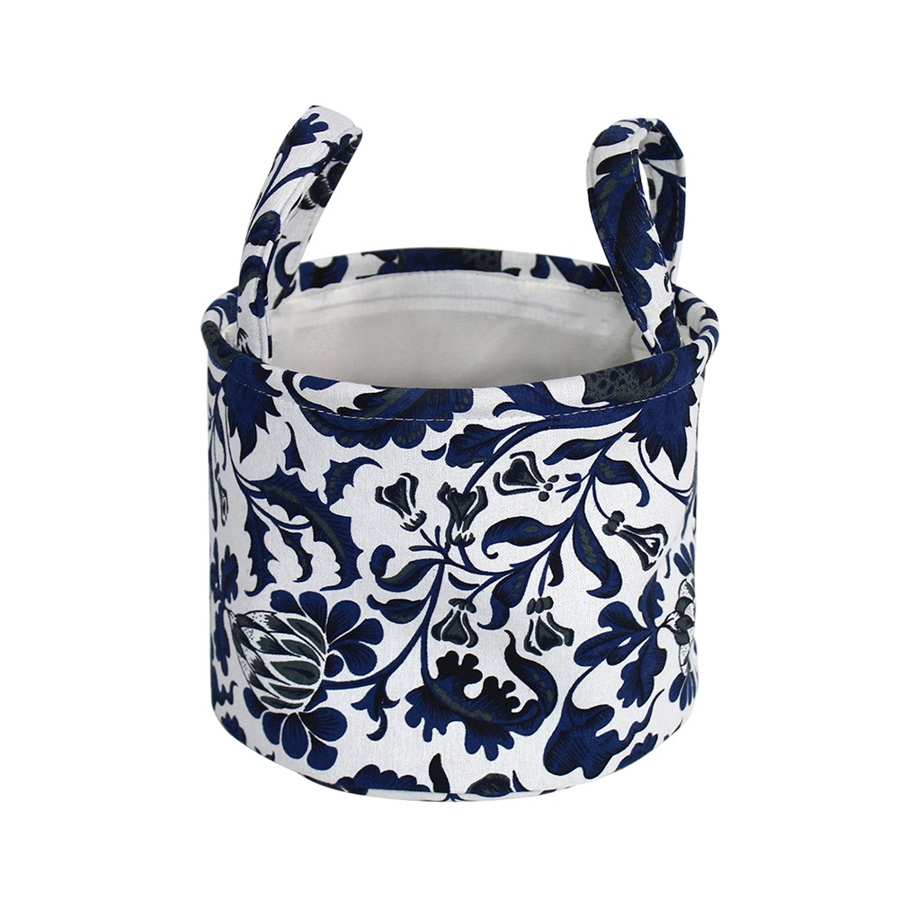 Storage box, textile, blue/white, Ø22 xH18 cm