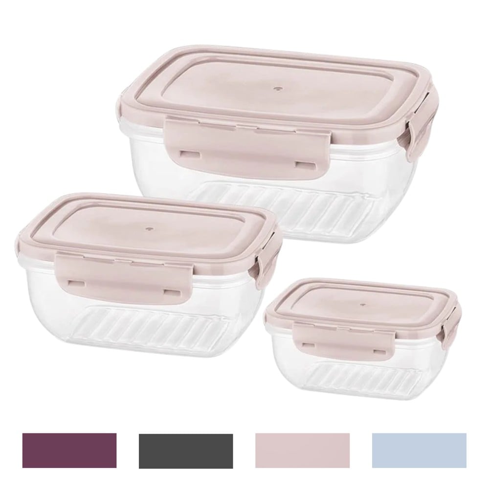 You're reviewing:Storage container set Cook&Lock (3 pieces), PP/Silicone, transparent/assorted colors, 400 / 800 / 1400 ml / 19.5x14.5x8 cm