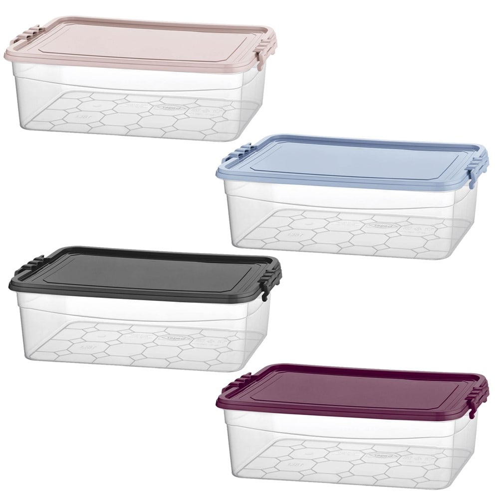 Storage container, with lid, PP, clear/light blue, 18 lt