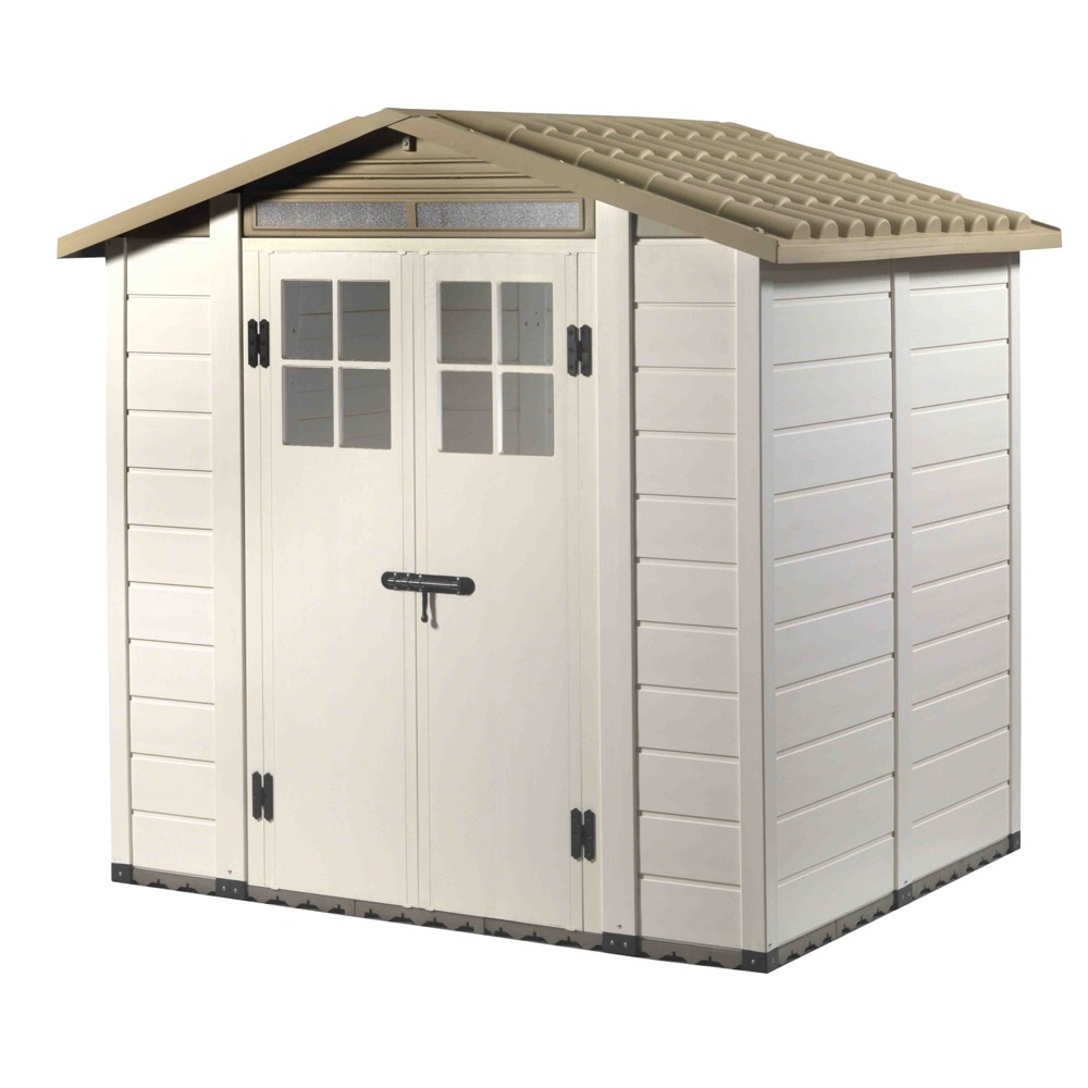 The Garofalo PVC shed, thanks to its compact size, is perfect for both your garden and your porch for storing garden tools, the shed with PVC material is very easy to install, resistant to bad weather and UV rays, it has the floor included and requires no maintenance. The door can be locked and the house can be cleaned very easily, the PVC material of the house can be painted and has 70 kg/m2 resistance to snow load, dimensions 220 x 181 x 216 cm, and weight 132.5 kg, color white - beige .