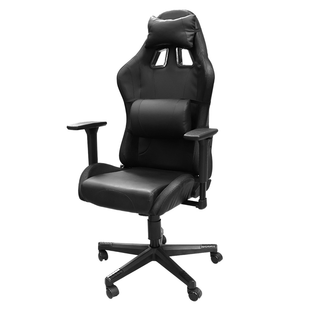 Study chair, 2D armrest, with LED, with Tilt-lock functional mechanism, PVC seat and back, nylon base and casters, black, 70x60xH126-136 cm