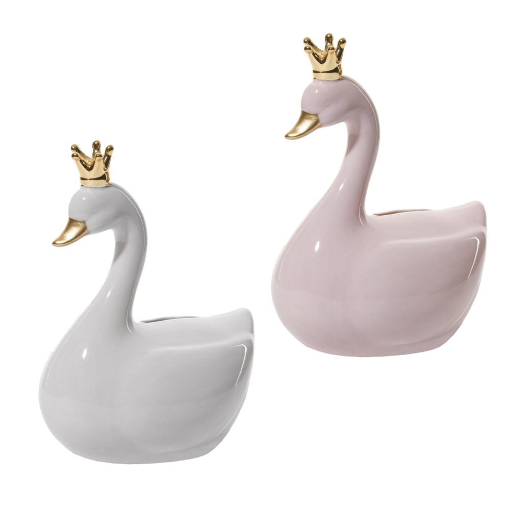 Swan savings box, 12.8x17.3x9.5 cm. composed of polystyrene material. The crate has a beautiful design in the shape of a swan. I deal to be used as a decorator in girls' rooms.