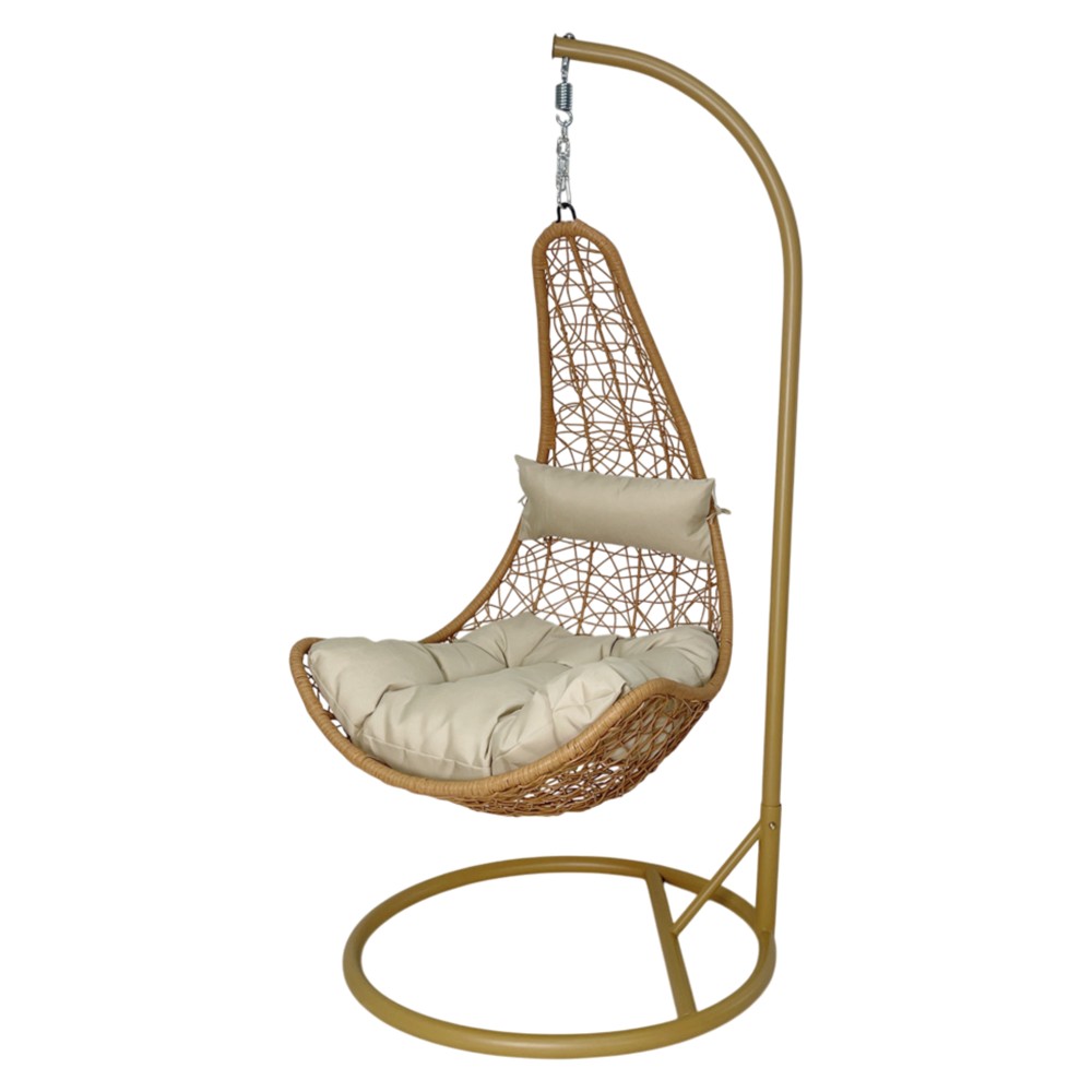Swing, metal/PE rattan, beige frame, beige slats, basket L126xW83xD70 cm, H200 cm