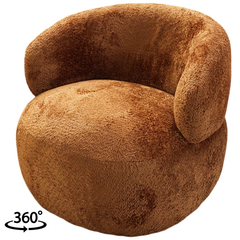 The swivel armchair "Euphoria" is suitable for use in various domestic or small spaces where a modern design element can improve the aesthetics and functionality of the environment. The textile terracotta colored upholstery gives a warm and modernist look, giving it a soft and inviting feel.