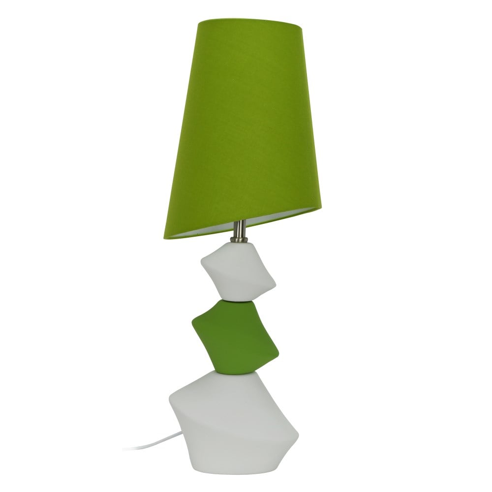 Table lamp E27 1x40W white & green ceramic base, green textile shade.