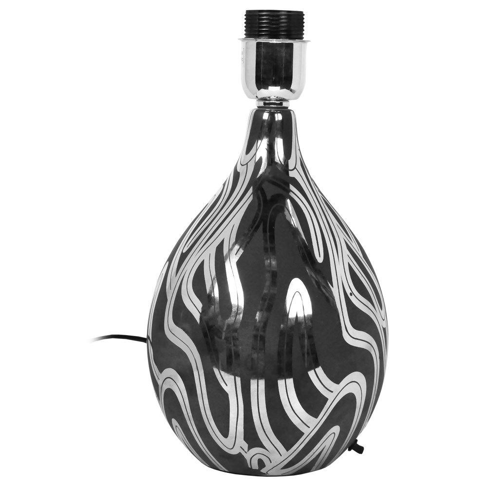 This ceramic table lighting base in black and silver color would be a perfect choice for transforming your interior spaces residential, bars or restaurants in space welcoming and stylish. This internal lights fits easily with ornamental elements of your space with warm shades.