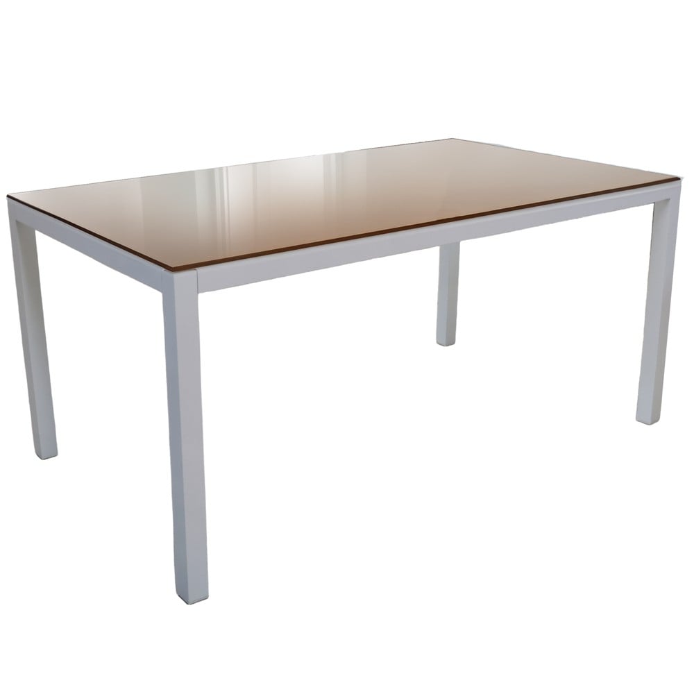 Table with tempered glass top, aluminum, light beige, 90x160xH75 cm