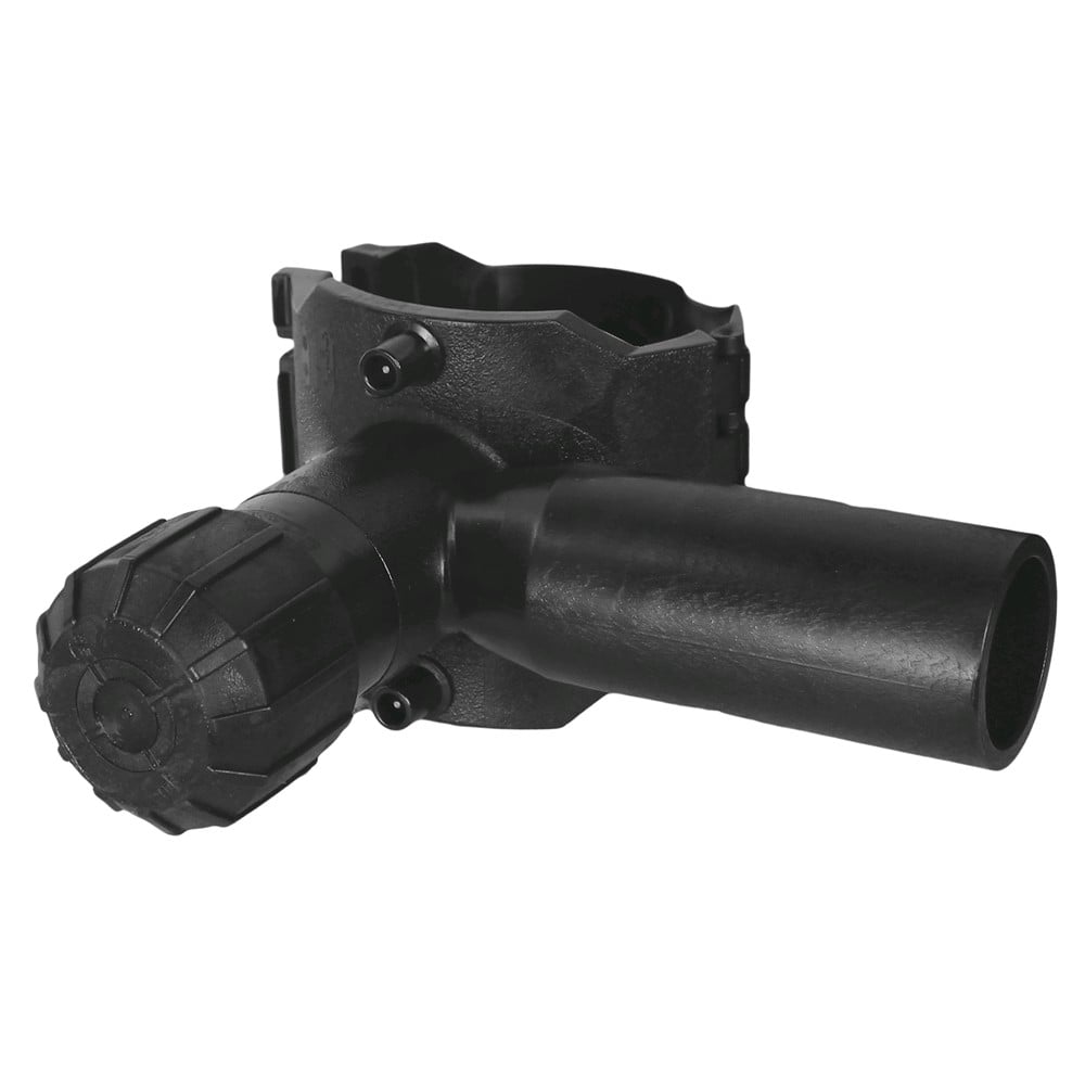 Tapping saddle HDPE 125mm with gate 63mm used widely today in the European market for making drinking water, natural gas from main lines without the need to interrupted water or gas from their main lines, this becomes possible through elektofusive attachment. This tapping saddle makes possible the unification of Ø 63mm tube with main line Ø 125. This coupling is made possible by cutting the tube Ø 125 by knife that is on elektrofashet . This knife by rotation with keys enables the cutting of the main water pipe and after it is cut by turning in the opposite enables the extraction of part of the main pipe is cut out. Manufactured with European standards, resistant to corrosive materials, high resistance to deformation of land and resistant to pressure up to 16 Bar.