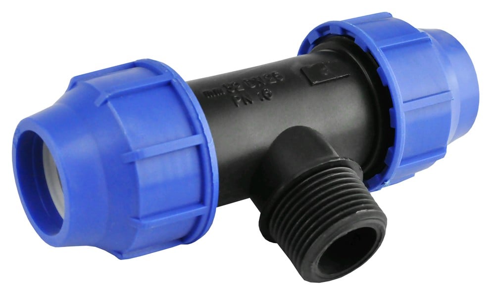 Tee with faucet of PP 20x1/2"x20 mm male with angle 90°. Used to installations angular water supply infrastructure lines, in irrigation and agricul, etc. This tee enables network branching 90° angle. This tee connect pipe Ø 20 with other fittings by fillet, for joining the fillet recommend tu use teflon whiles pipe connect whith tee in mechanically with faucet. Manufactured with European standards, resistant to corrosive materials designed to withstand pressure up to 16 Bar.