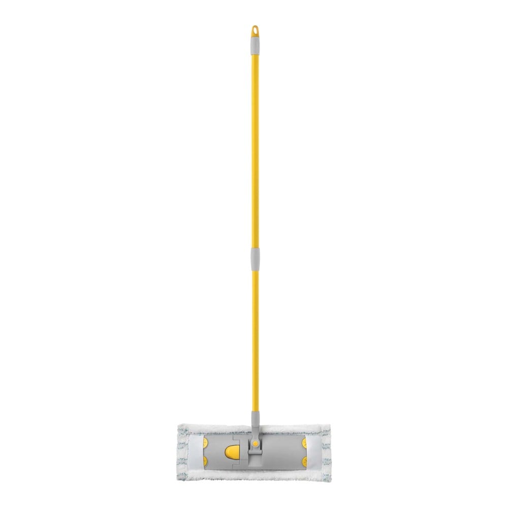 Floor mop with microfibre cloth, wide cleaning surface. The special microfibre cloth, used wet, removes and traps the stubborn dirt. Used dry, it attracts and traps dust and hair, thanks to its electrostatic action. Perfect for all types of floors , even the most delicate ones. Pivoting head , for hard-to-reach corners. The cloth is easily removable and machine washable.