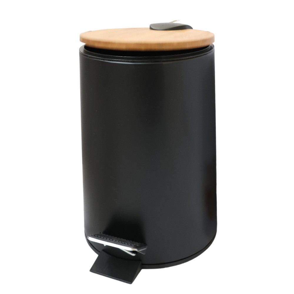 Toilet basket, 3L, metal/bamboo, black, 16.8xH24cm