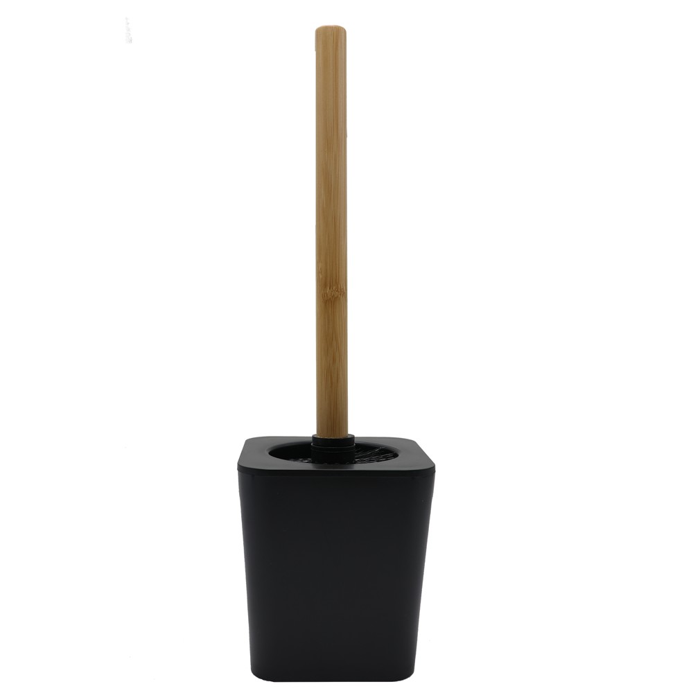 Toilet brush, plastic, bamboo handle, black, 11.5x11.5x38.5cm