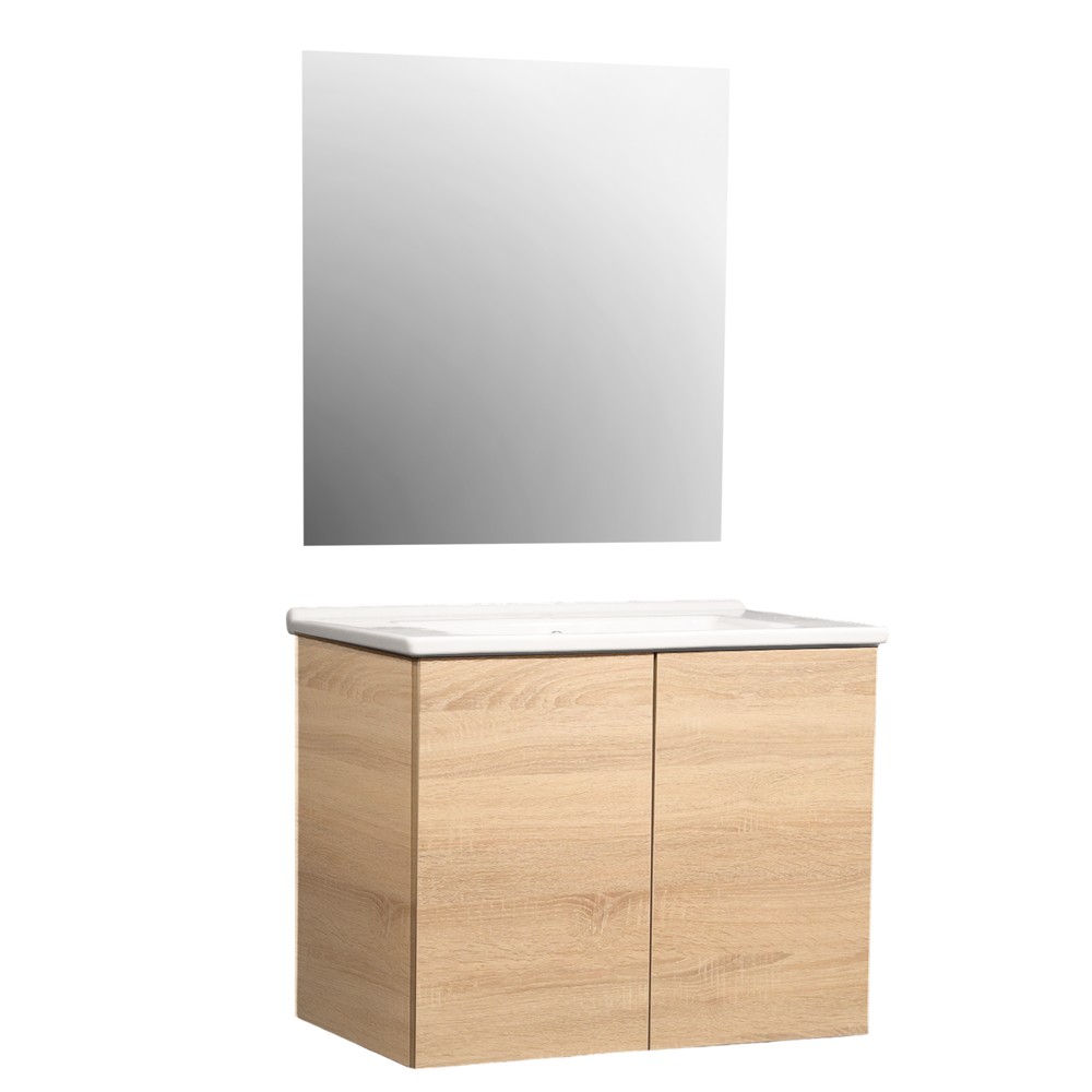 The "ARLO 80" toilet furniture set in dark brown color presents the elegant model that enlivens your toilet. The white porcelain sink offers style in the decor of your toilet, ease of cleaning, providing a beautiful and very modern look for toilets with medium spaces. MDF furniture material is moisture resistant. The dark brown color is very well composed in rooms with modern monochrome tiles and with motifs of different colors. The set includes the sink, the cabinet below it and the mirror, all packaged for a very simple and quick assembly by anyone.
