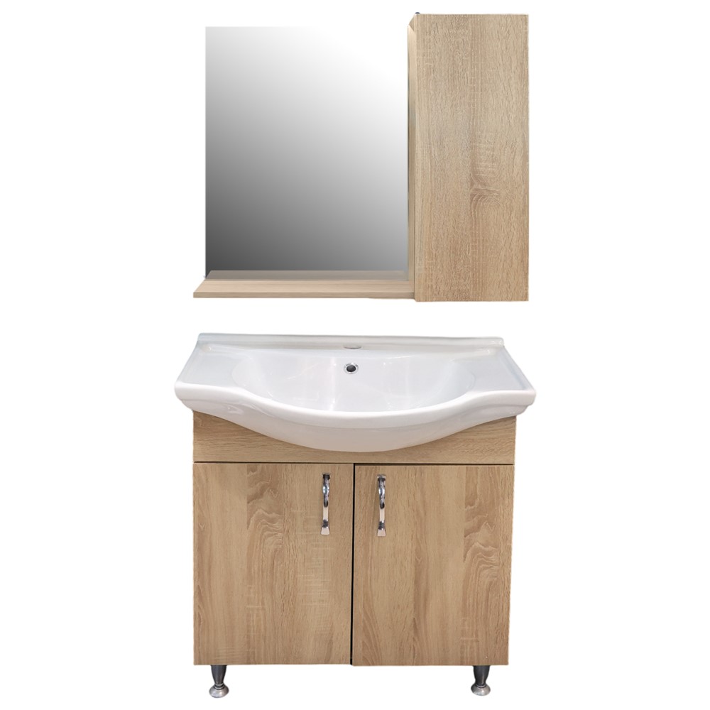 The "SQUARE 80" toilet furniture set in dark brown color presents the elegant model that enlivens your toilet. The white porcelain sink offers style in the decor of your toilet, ease of cleaning, providing a beautiful and very modern look for toilets with medium spaces. MDF furniture material is moisture resistant. The dark brown color is very well composed in rooms with modern monochrome tiles and with motifs of different colors. The set includes the sink, the cabinet below it and the mirror, all packaged for a very simple and quick assembly by anyone.