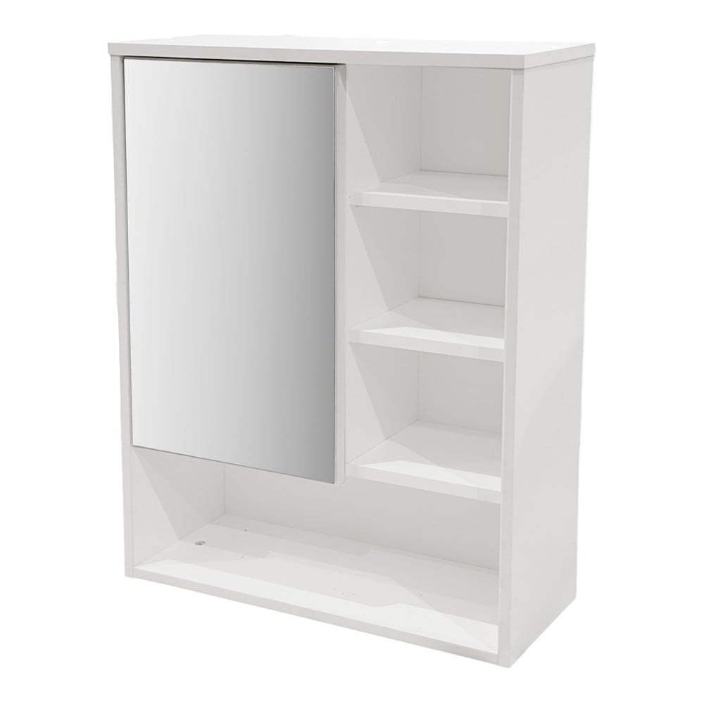 The toilet mirror "Naomi S" is the ideal solution for organizing personal items in your toilet. Produced in melamine with a thickness of 16 mm, this mirror is extremely durable and long-lasting. The white color of the mirror allows this product to be easily adapted to all types of furnishings. This mirror is composed of 4 shelves, 3 on the right side and one lower shelf, as well as a mirror that opens to expose storage space. Dimensions: height : 75 cm, width : 60 cm, depth : 18 cm.