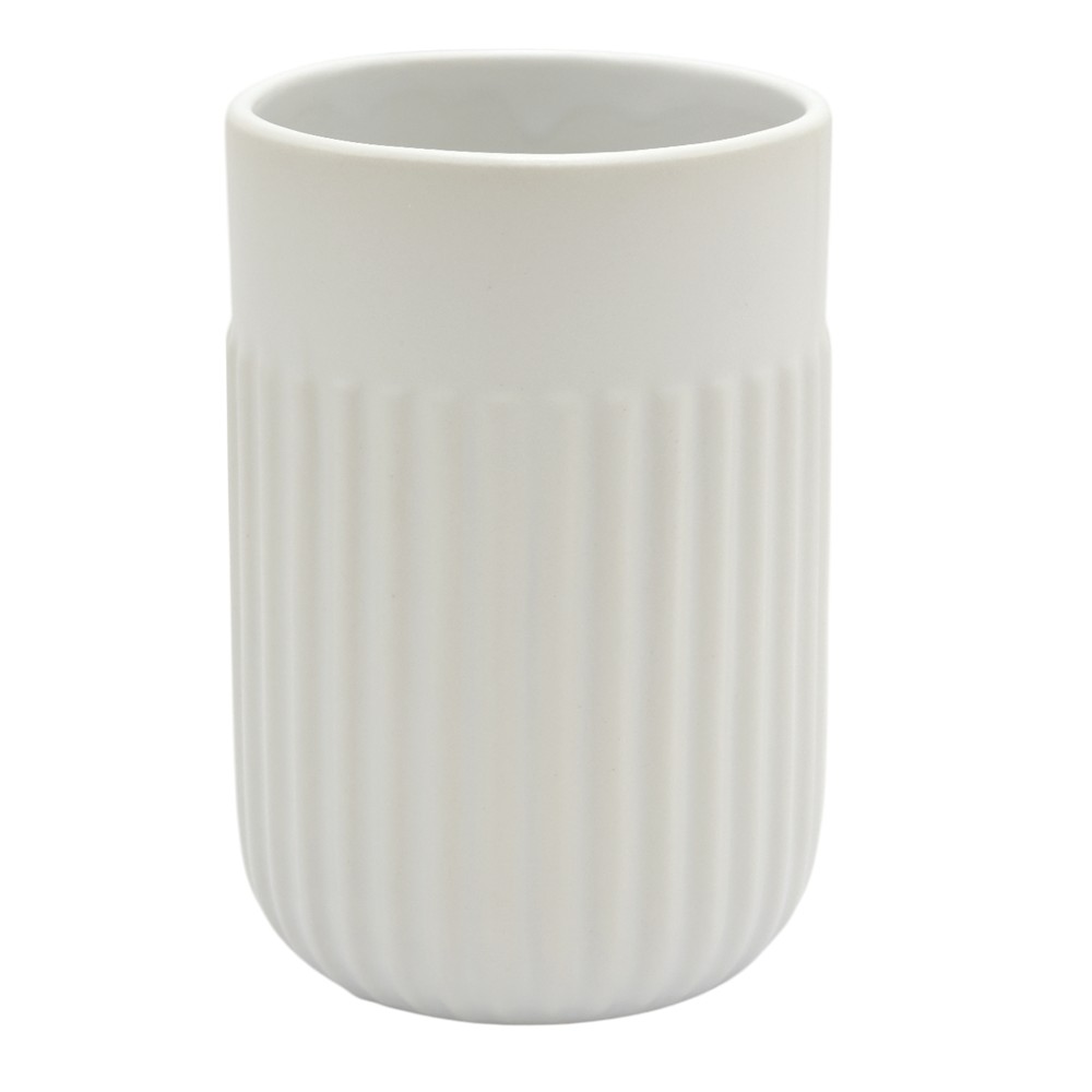 Toothbrush holder "Nevada" produced by FERIDRAS in high quality ceramic material. Its white color fits easily with all types of furnishings. This accessory does not need assembly as it rests on the furniture. Complete the set of accessories with the "Nevada" line. Dimensions, height : 11 cm, diameter : 7 cm.