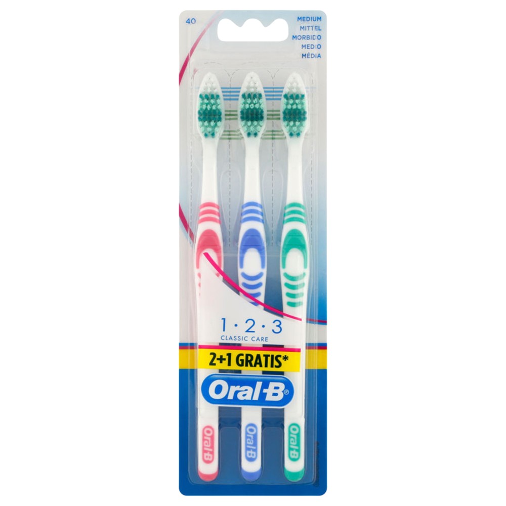 The Oral-B Medium 2+1 toothbrush provides effective and gentle cleaning for teeth and gums. With medium-intensity bristles, it is designed to clean deeply without irritating gums. The pack contains 3 brushes, offering excellent value and long-lasting use. Ideal for daily oral care.