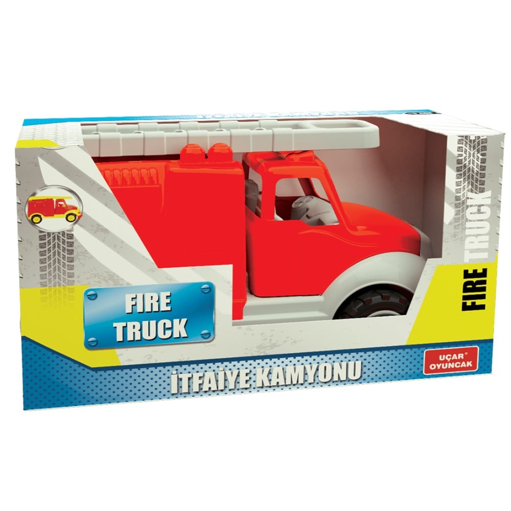 Toy fire truck for children, made of durable plastic material, in red and gray color, with movable ladder, with ergonomic design and with 4 wheels. This toy helps to develop motor skills in children and stimulates the development of imagination. The constituent material and the paint have no toxic or harmful composition for children and the product is certified for children's safety. This product is suitable for use by children over 3 years old and it can be used indoors and outdoors.