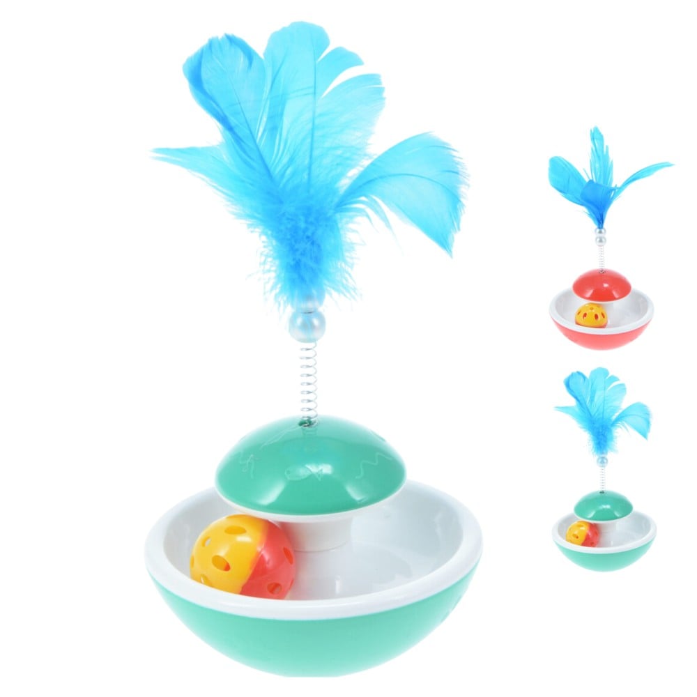 Always-up cat toy, with ball and feathers, two assorted colors.