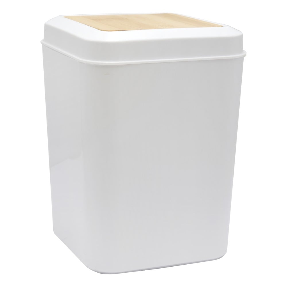 Trash can, 3L, bamboo lid, plastic, white, 17.5x17.5xH24cm