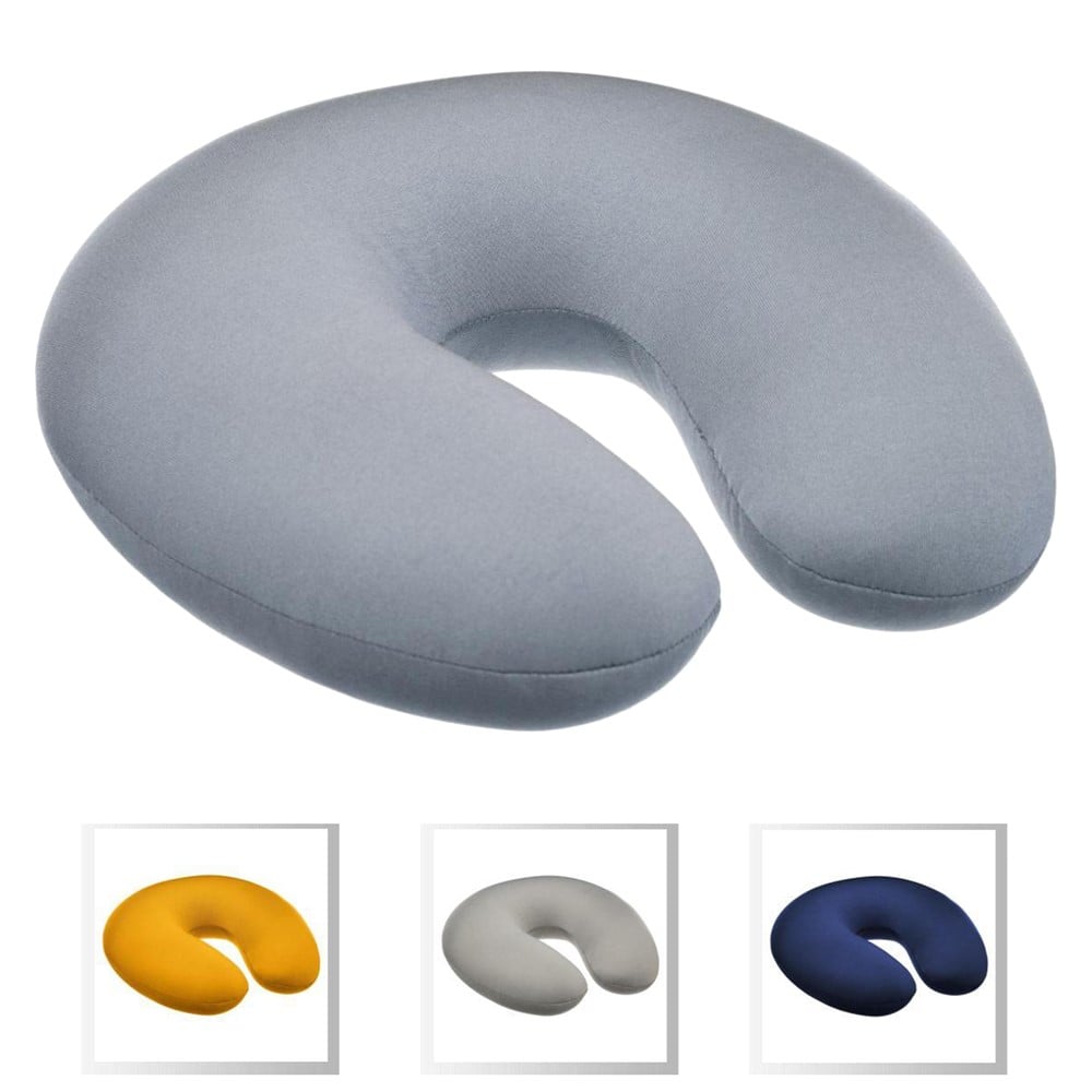 Travel cushion, made of polyester and elastane material, in the shape of U, in different colors. It is used to support the head or to sleep during a trip by car or plane, without damaging the neck vertebrae. It has compact dimensions, which make it practical to take with you on trips. The material is soft on the skin and does not cause irritation.